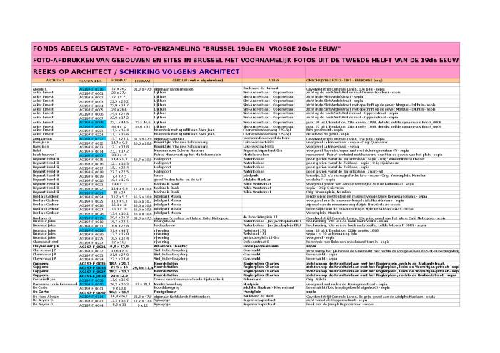 - Om de bewaartoestand van de stukken (plannen, foto's en glasnegatieven) te garanderen en ze zo weinig mogelijk te manipuleren, wordt aangeraden de scans van de documenten te consulteren. Scans stadsplattegronden, plannen, foto's en glasnegatieven en bijhorende lijsten geprint op A3-formaat, zie mappen in grijze kast in Schaarbeek (kast 71). Alle scans van de documenten zijn consulteerbaar op de server van het Sint-Lukasarchief.